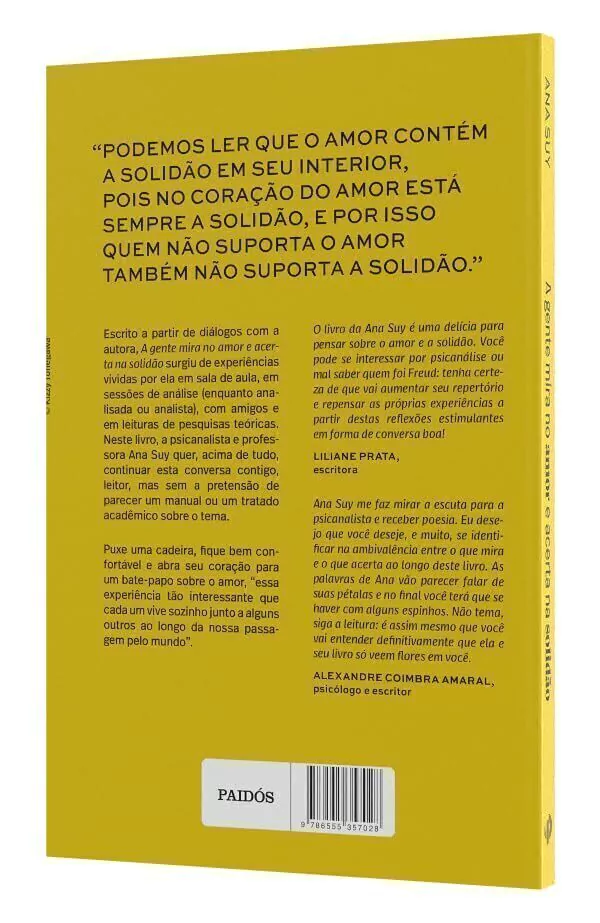 Escrito a partir de diálogos, A gente mira no amor e acerta na solidão, surgiu de experiências vividas pela autora em salas de aula, em sessões de análise (enquanto analisante ou analista), com amigos, em leituras de pesquisas teóricas. Neste livro, a psicanalista e professora Ana Suy quer, acima de tudo, continuar essa conversa contigo, leitor, sem a pretensão, no entanto, de ser um manual ou um tratado acadêmico sobre o tema.
