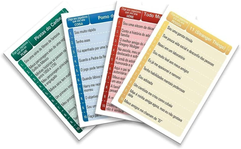 Ele traz uma nova forma de jogar atraves de categorias inspiradas no streaming e nas telas de cinema! Cada cartela possui 10 dicas que valem ate 10 pontos.