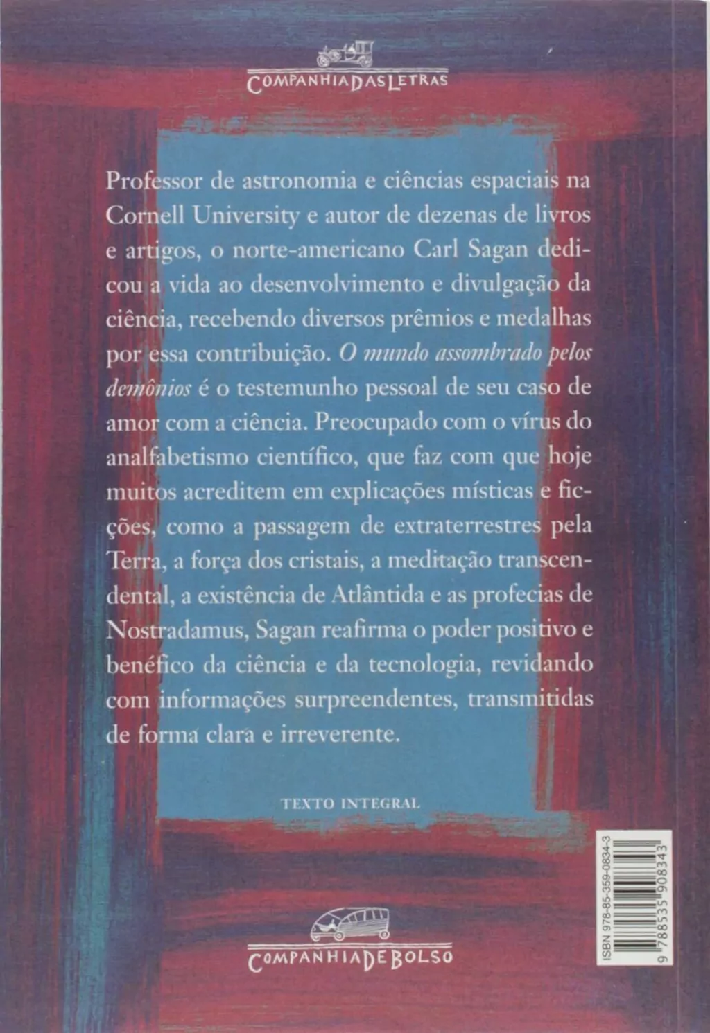 Assombrado com as explicações pseudocientíficas e místicas que ocupam cada vez mais os espaços dos meios de comunicação, Carl Sagan reafirma o poder positivo e benéfico da ciência e da tecnologia para iluminar os dias de hoje e recuperar os valores da racionalidade. Como todos os livros do autor, O mundo assombrado pelos demônios está cheio de informações surpreendentes, transmitidas com humor e graça. Seus ataques muitas vezes divertidos à falsa ciência, às concepções excêntricas e aos irracionalismos do momento são acompanhados por lembranças da infância, quando seus pais o colocaram em contato pela primeira vez com os dois modelos de pensamento fundamentais para o método científico: o ceticismo e a admiração.