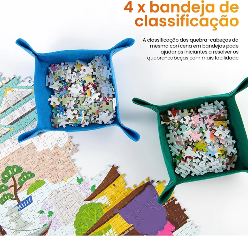 • Capacidade de classificação aprimorada: Nosso conjunto de tabuleiro de feltro é equipado com um recurso de classificação (com 4 bandejas coloridas), facilitando a organização e a categorização dos quebra-cabeças por cor ou formato, permitindo que os entusiastas encontrem o quebra-cabeça desejado mais rapidamente e facilitando uma experiência de resolução de quebra-cabeças mais organizada e eficiente.