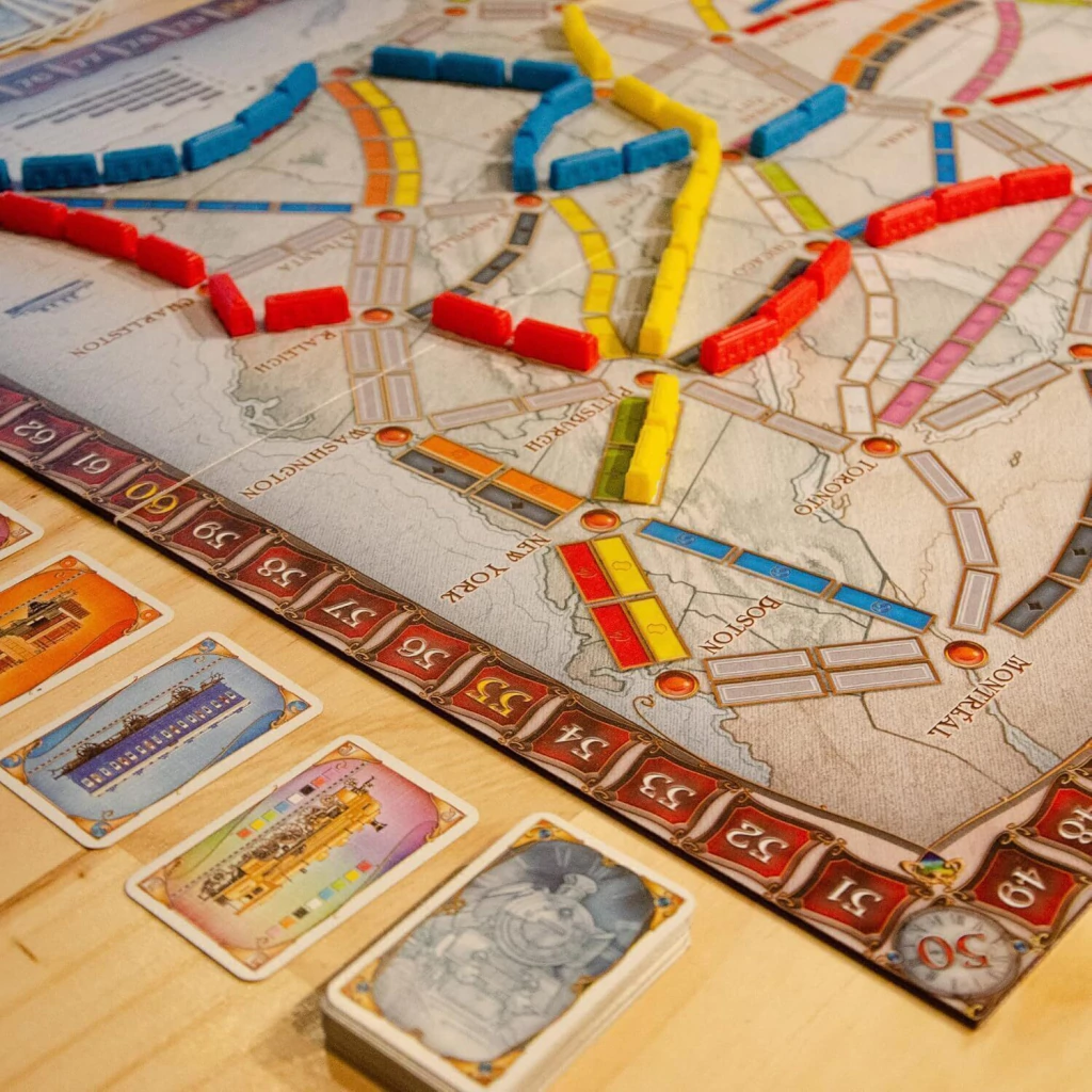 Quase 28 anos após a lendária jornada de Phileas Fogg ao redor do mundo em 80 dias, uma nova aventura espera por você em Ticket to Ride. Esta é uma emocionante competição ferroviária que atravessa os Estados Unidos e Canadá, onde velhos amigos se reúnem para celebrar a audaciosa e lucrativa aposta de Fogg. Desta vez, a aposta é ainda mais desafiadora: quem conseguirá viajar de trem pelo maior número de cidades em apenas 7 dias? Ticket to Ride é um jogo de tabuleiro moderno premiado mundialmente, projetado para 2 a 5 jogadores. O objetivo é coletar cartas de vários tipos de vagões, que permitem conquistar rotas de trem conectando cidades através dos EUA. Quanto maior a rota, mais pontos você ganha. Cada jogada envolve planejamento estratégico e táticas inteligentes para garantir que você conquiste as rotas mais valiosas e maximize sua pontuação. Prepare-se para embarcar em uma aventura ferroviária divertida e desafiadora. Reúna suas cartas, planeje suas rotas e veja se você tem o que é preciso para vencer essa competição épica. Em Ticket to Ride, cada partida é uma nova jornada emocionante!